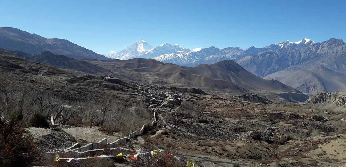 Before breakfast, we transfer you to the airport for an early morning flight to Jomsom. This breathtaking mountain flight takes you to Jomsom in about 20 minutes. As you leave Pokhara valley and approach the mountain, the Annapurna on the right side and Dhaulagiri range on the left is amazing. The flight, view of the mountain peaks, landing at the airport located in the bank of Kali Gandaki river beneath the majestic Nilgiri mountain awestruck you. You enjoy your breakfast and the prepare for the ride to Kagbeni. Cycling along the Kali Gandaki River bank up to Kagbeni is a steady and awesome ride mostly on flat trail. You take an easy ride today and stop in Kagbeni for overnight stay. You can explore the rare wonder of Kagbeni town, age-old monastery, and surrounding area for the rest of the day. Overnight local lodge.