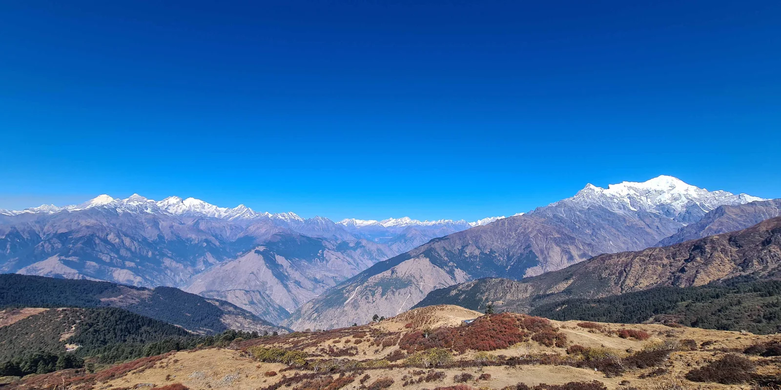 The highest point is Lauribina Pass (4,610m / 15,125ft), which offers breathtaking panoramic mountain views.