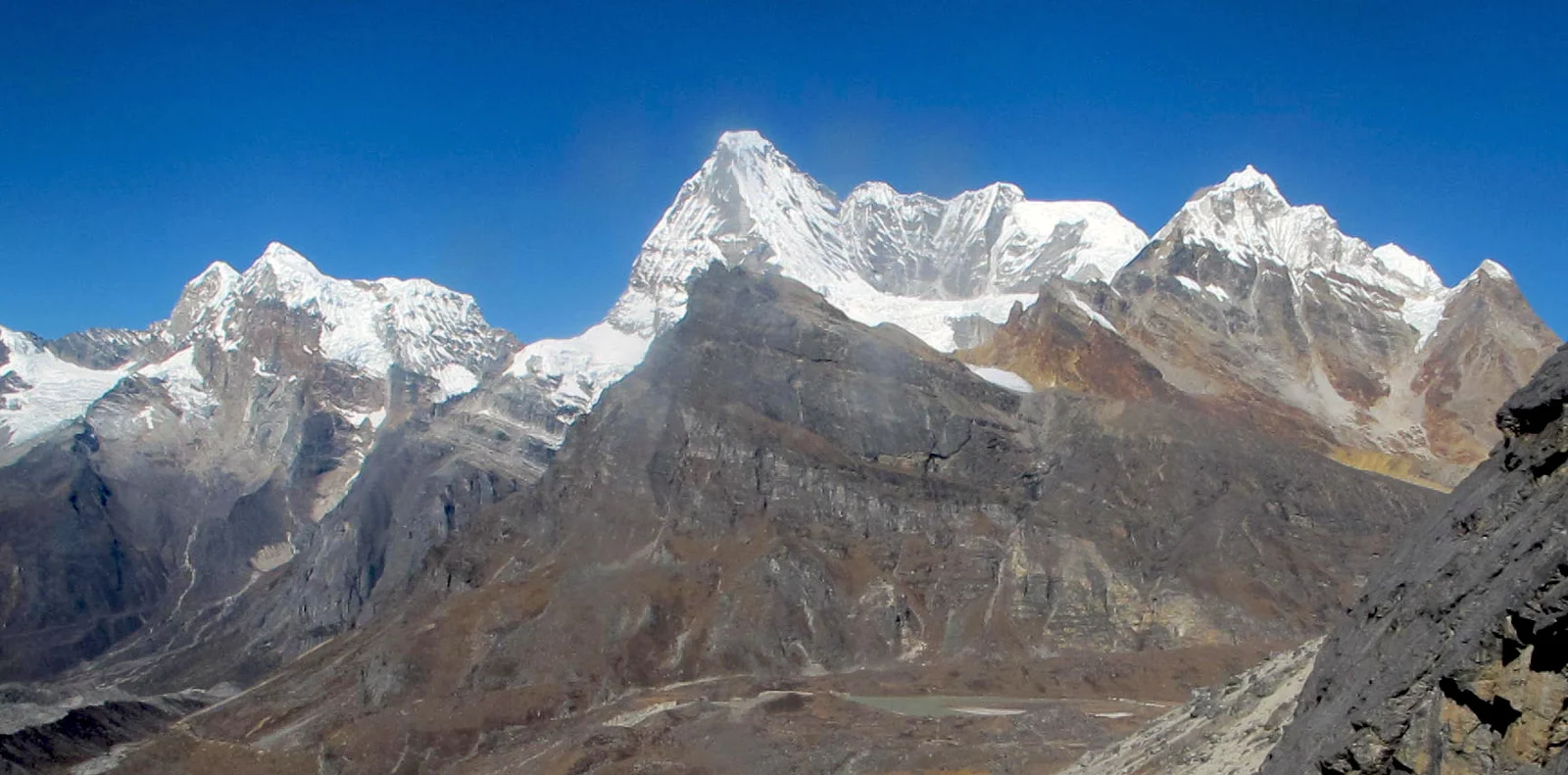 Chunbu Kharka’s your first long hill climbing for the Mera Peak Conquest. It’s a climb which sits at 4200m/13779ft above sea level with a sneak peak view of Merapeak and valley below. The famed Peaks of the Globe sits side by side with the mountain massif Mera here. Jaggedy and winding rock face trails on a backdrop of barren Himalayan Landscape then drops down to Chunbu Kharka. The village is a downhill ascend from a stone stepped ladders created by industrious locals here.